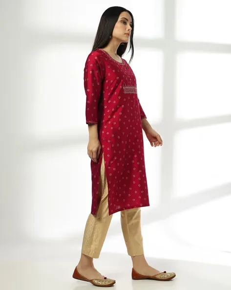 Women Embroidered Straight Kurta